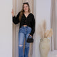 NEW LAUREN KNIT V-NECK SWEATER (BLACK)