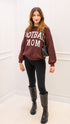 FOOTBALL MOM OVERSIZED KNIT SWEATER – CHOCOLATE BROWN