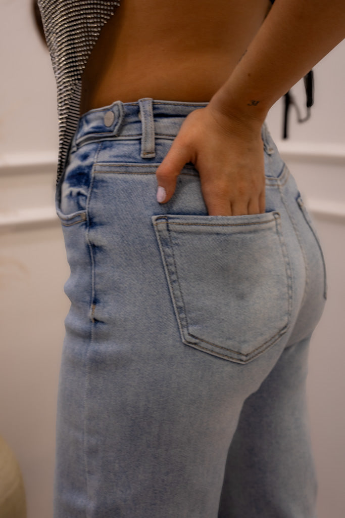 NEW ANDREA HIGH RISE WIDE LEG ADJUSTABLE WAIST JEANS (LIGHT)