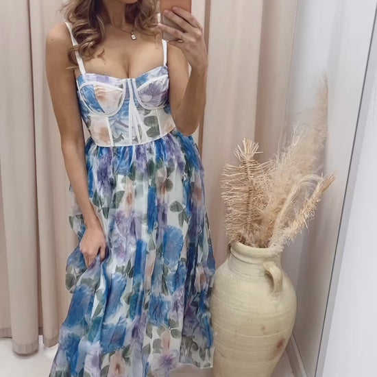 DAPHNE BUSTIER ORGANZA MIDI DRESS (FLORAL) (HOT RESTOCK)