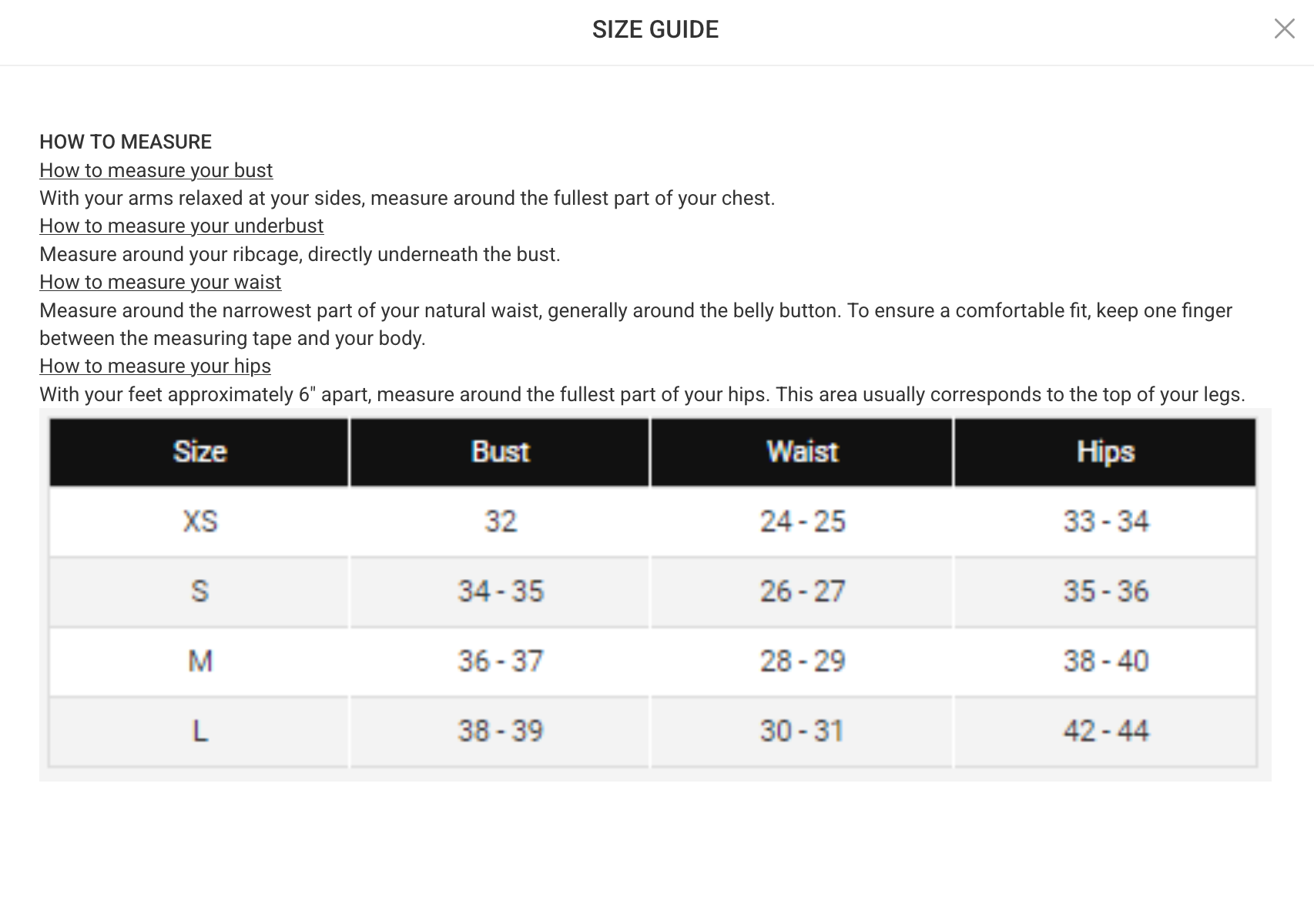• Due to hygiene concerns the following CAN-NOT be returned: swimwear and bodysuits