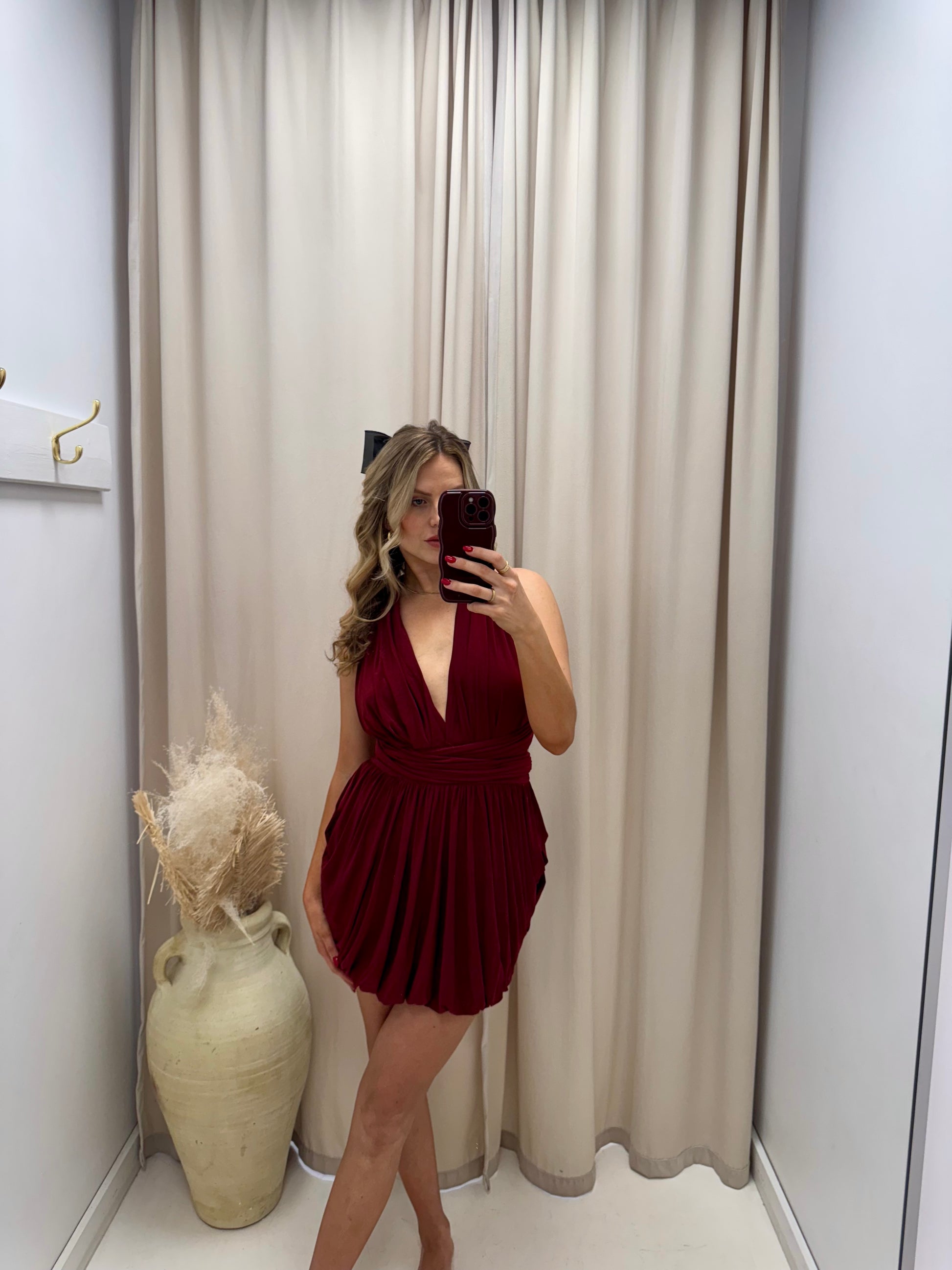 NEW VALORIE VENETIAN MINI DRESS (BURGUNDY)