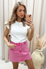 NEW WILLOW DENIM SKIRT (HOT PINK)
