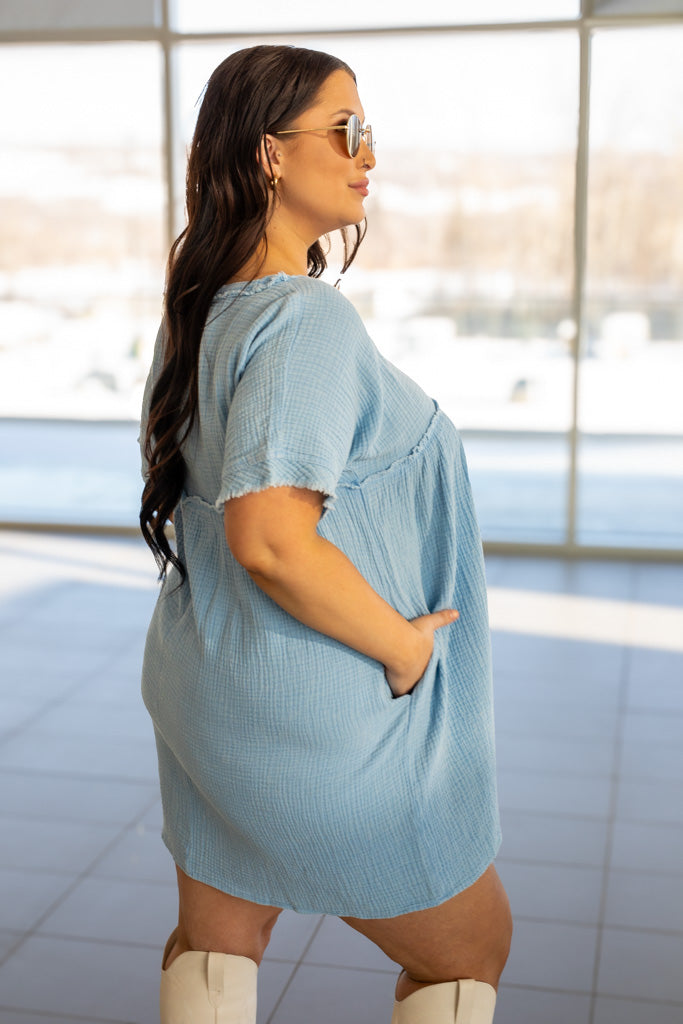 NEW WISTERIA BABYDOLL DRESS (DUSTY BLUE)
