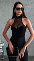 Black Knit Sleeveless Top with Sweetheart & Mesh Detail