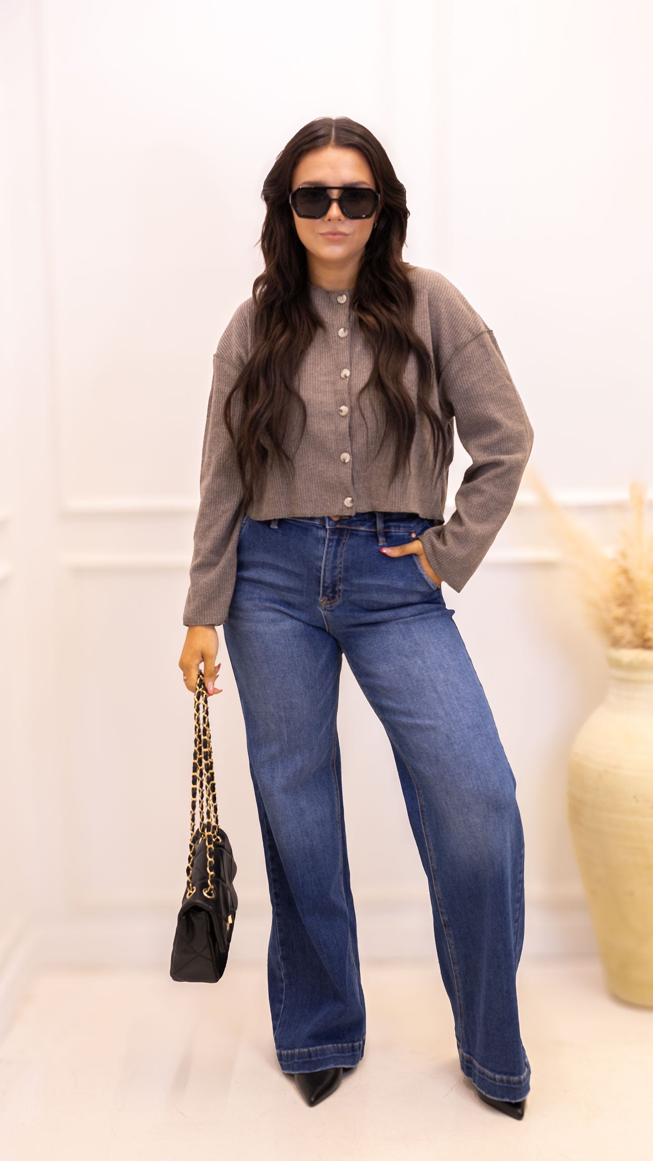 Soft and stretchy ribbed knit cardigan in a warm latte brown shade. Designed with a boxy, relaxed fit and full button-up front, this piece layers effortlessly over your favorite tanks or tees. The long sleeves and lightweight stretch make it perfect for cozy yet polished everyday styling.