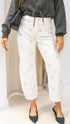 KLOE HIGH RISE LEAF EMBO DETAILED BARREL PANTS