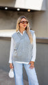 The perfect layering piece for fall. This grey sweater vest features an oversized silhouette with a high front hem that tucks seamlessly into your favorite high-waisted jeans, trousers, or skirts. The longer back hem gives you the option for extra coverage — making it just as chic with leggings. Pair it with our Jillian White Blouse (sold separately) for an effortlessly refined layered look.