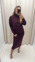 This two-piece set features a soft, super-stretchy waffle knit that flatters every curve while keeping you comfortable all day long. The long sleeve turtleneck sweater pairs perfectly with a high-rise, elastic waistband maxi pencil skirt — creating a sleek, coordinated look that transitions seamlessly from brunch to evening plans.